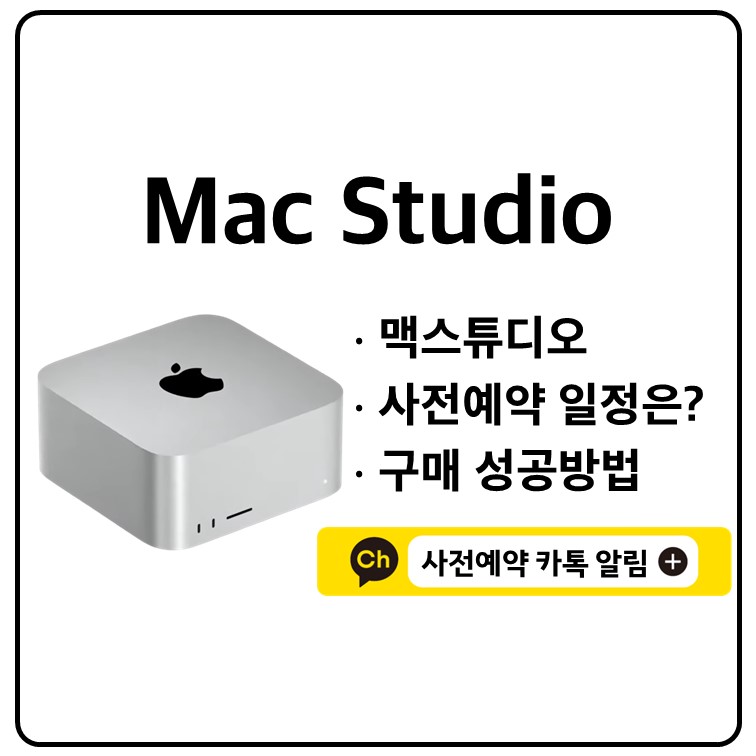2022년 3월 애플 봄 이벤트에서 공개한 맥스튜디오 사전예약 정보뿐만 아니라 디자인, 가격, 출시일, 사전예약, 쿠팡 구매 성공방법 노하우 등을 확인할 수 있으며 할인이 시작되면 카톡 알림 신청을 통해 정보를 얻을 수 있다.